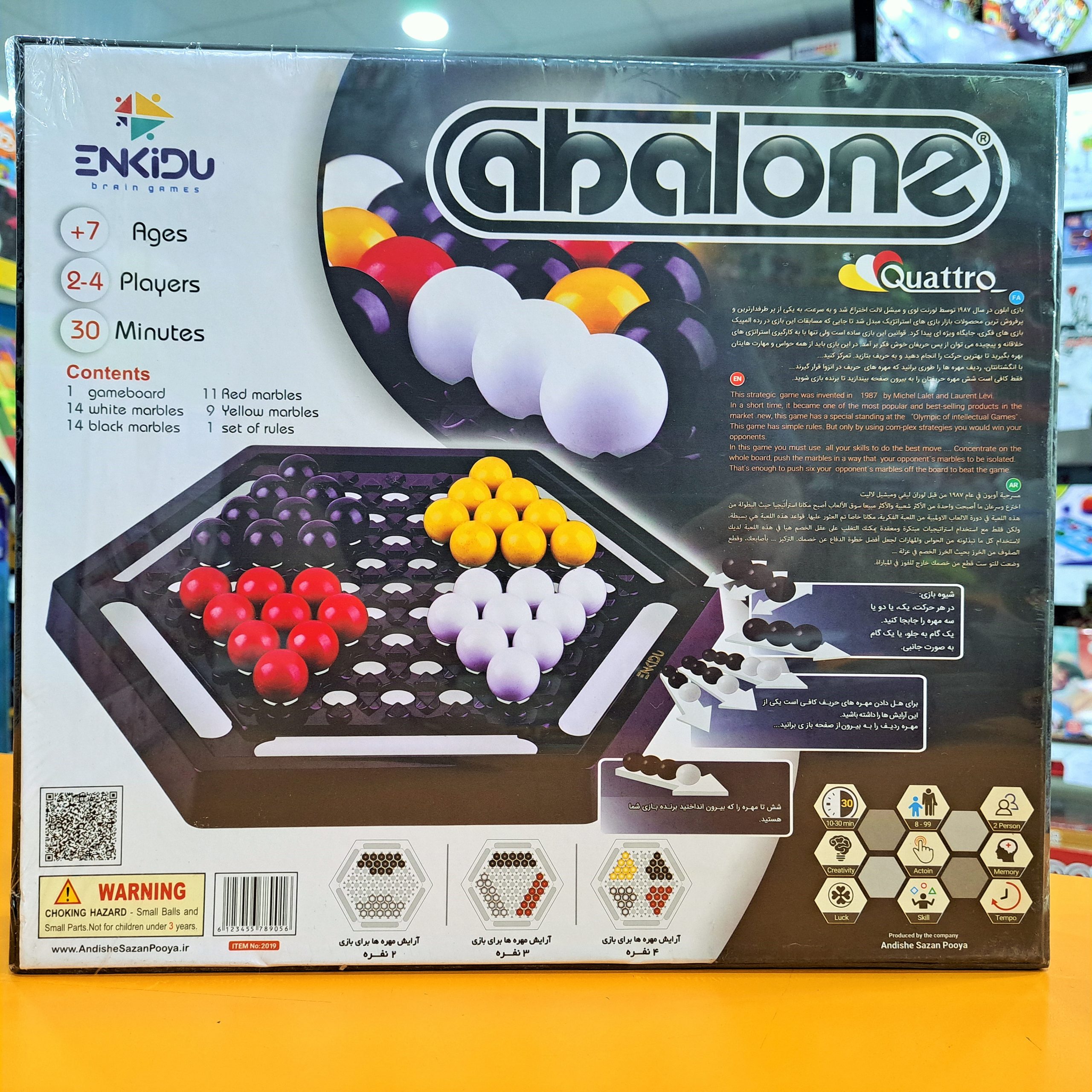 آبالون یه بازی فکری فوق‌العاده است که هم ساده است و هم عمیق. یادگیریش آسونه ولی استاد شدن توش زمان می‌بره. اگه دنبال یه بازی هستید که ذهن رو حسابی به چالش بکشه، قدرت تفکر استراتژیکتون رو بالا ببره و ساعت‌ها شما رو سرگرم کنه، “آبالون” یکی از بهترین انتخاب‌هاست! این بازی نه تنها یه سرگرمی عالیه، بلکه یه تمرین ذهنی واقعی هم محسوب میشه.