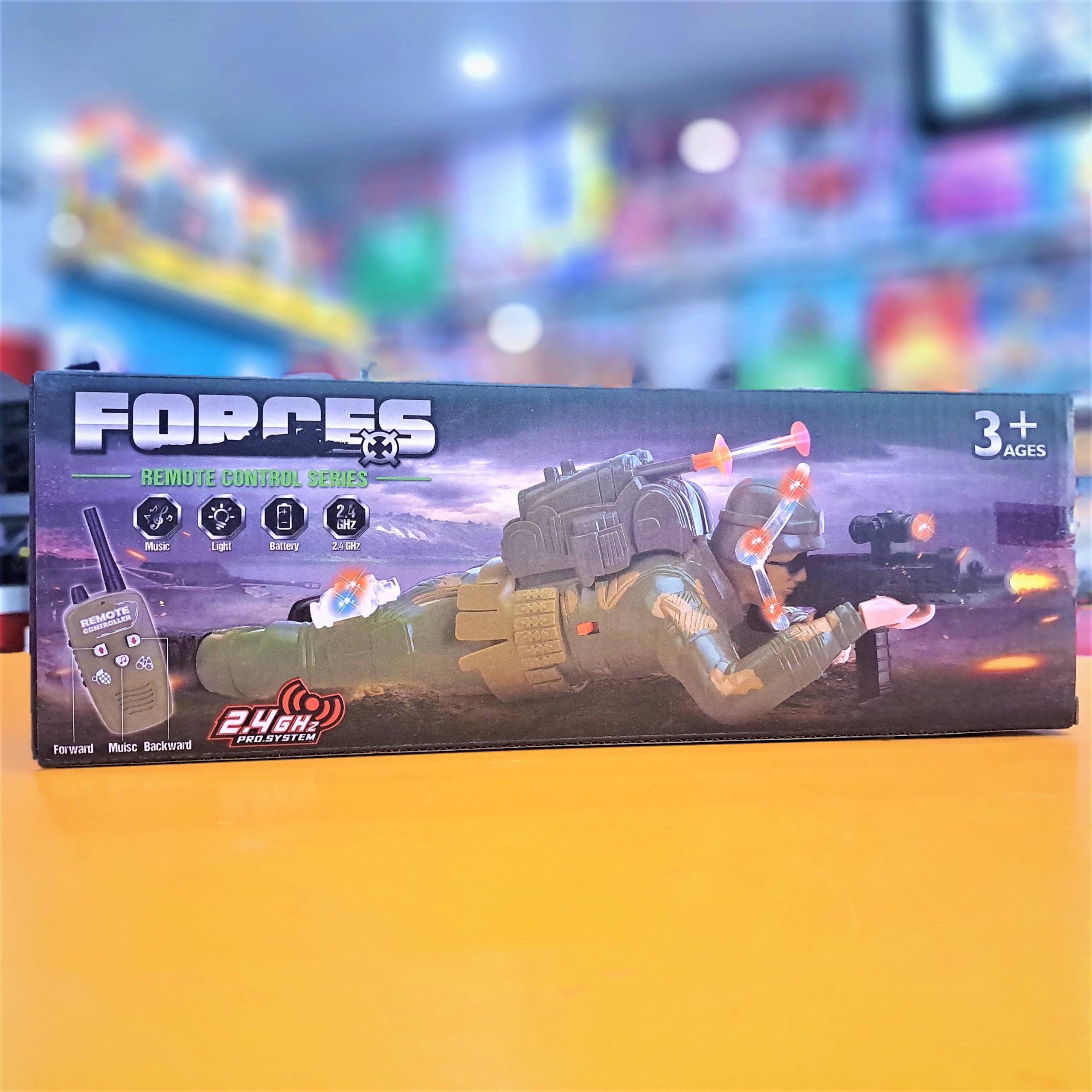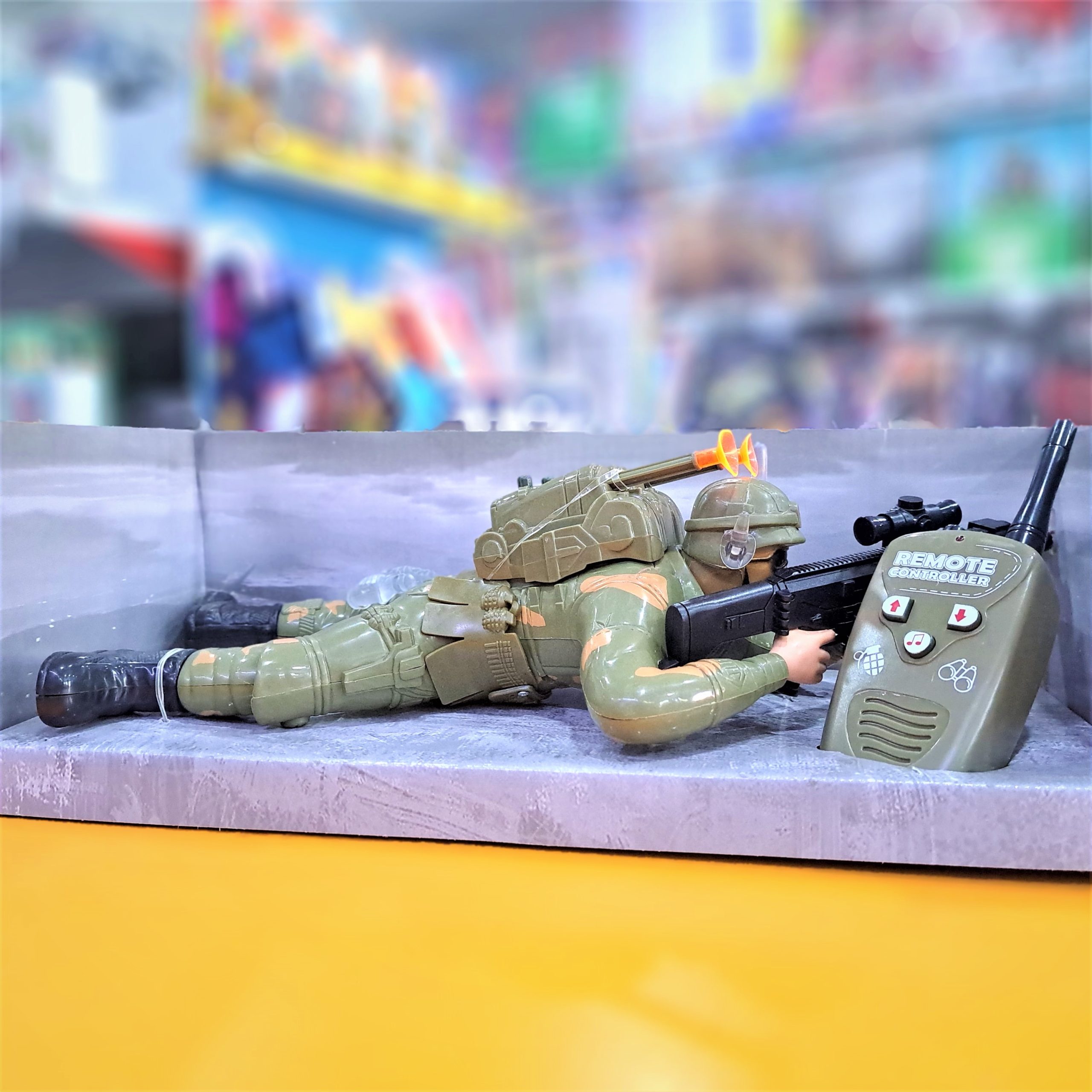 - کنترل از راه دور: کودک میتواند با استفاده از کنترل بیسیم کوچک، سرباز را به جلو و عقب هدایت کند و صداهای جذاب پخش کند.