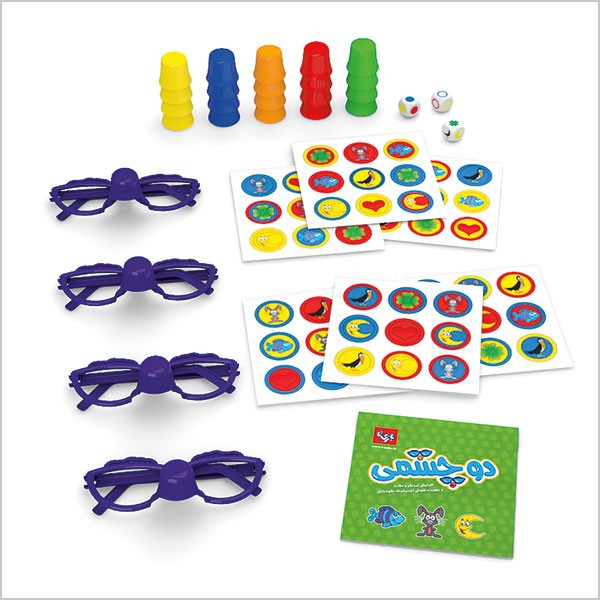 دو چشمی یک بازی گروهی شاد و پر از هیجان ۲ تا ۴ نفره است. این بازی شامل چهار عینک مخصوص، ۲۰ لیوان کوچک در رنگ بندی های مختلف، ۳ تاس بازی و ۶ کارت تصاویر است.