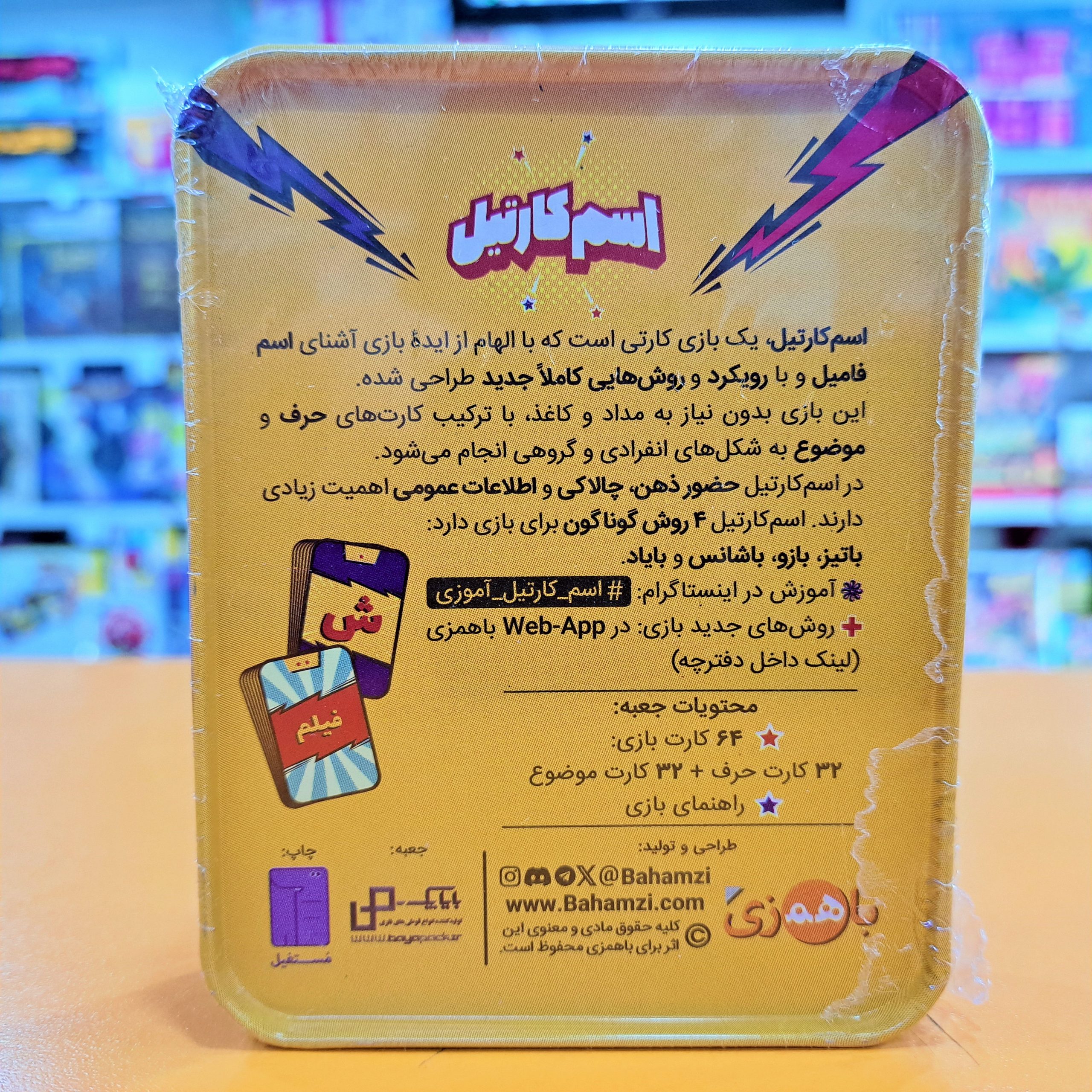 “اسم کارتیل” یه بازی فکری ایرانی و کارتیه که بر اساس بازی محبوب اسم فامیل طراحی شده. دیگه خبری از کاغذ و قلم نیست! فقط کافیه کارتهای حرف و موضوع رو بردارید و قدرت ذهن و سرعت عملتون رو به چالش بکشید.