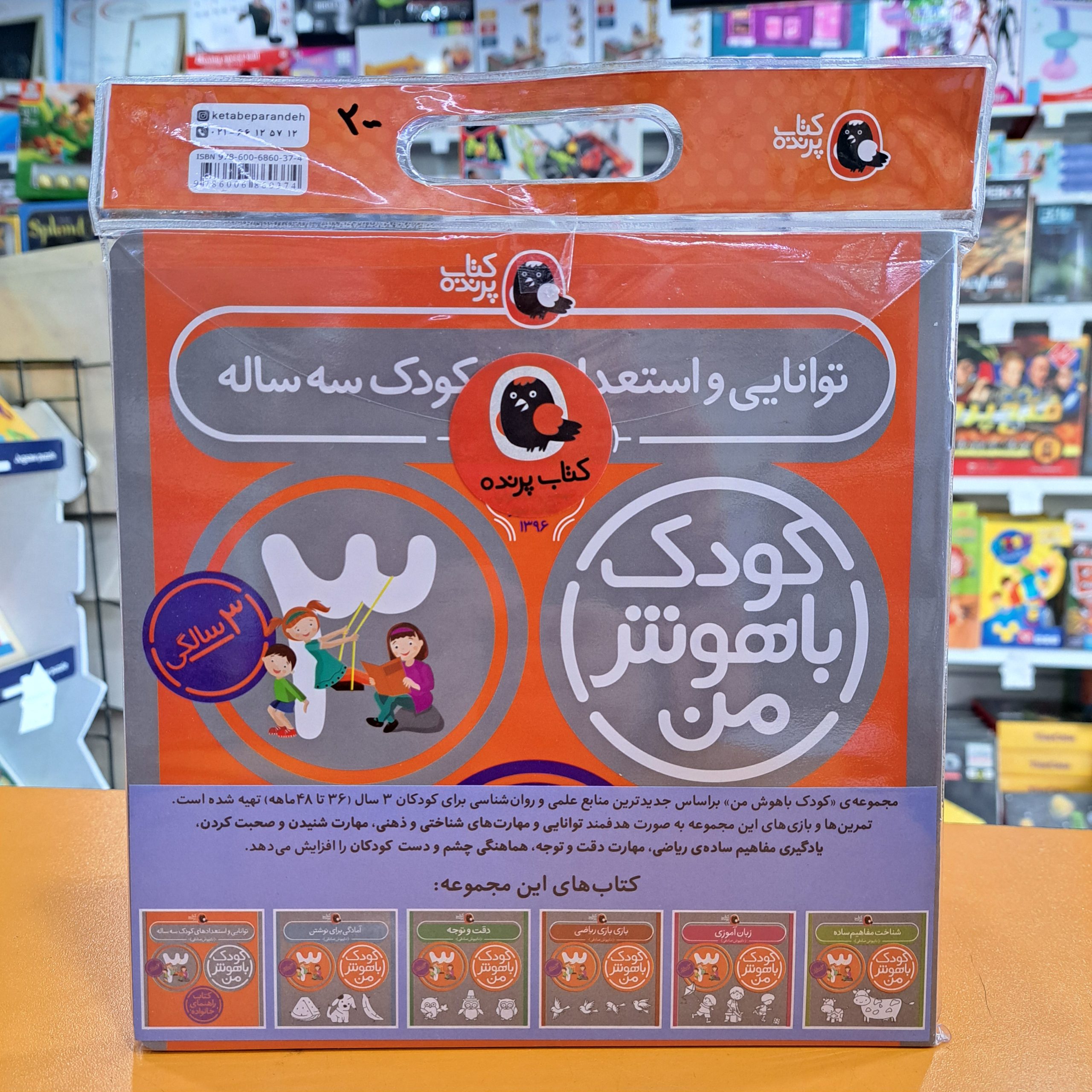 مجموعهی «کودک باهوش من» بر اساس جدیدترین منابع علمی و روانشناسی برای کودکان 3 سال تهیه شده است. تمرینها و بازیهای این مجموعه به صورت هدفمند تواناییها و مهارتهای شناختی و ذهنی، مهارت شنیدن و صحبت کردن، یادگیری مفاهیم سادهی ریاضی، مهارت دقت و توجه، هماهنگی چشم و دست کودکان را افزایش میدهد.