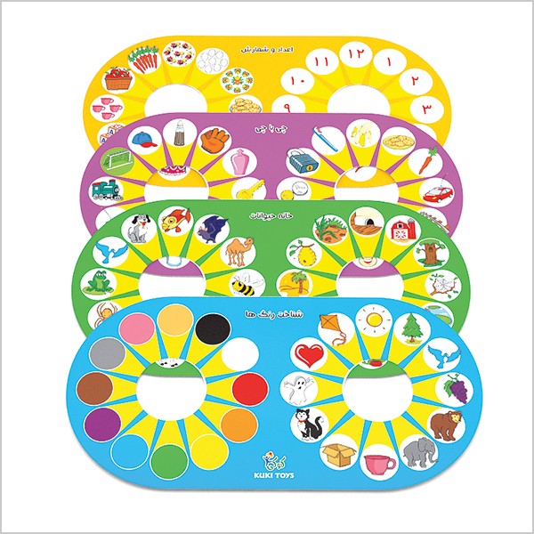 - آشنایی با رنگها، حیوانات و خانهی آنها، شکلها، مشاغل و عددها