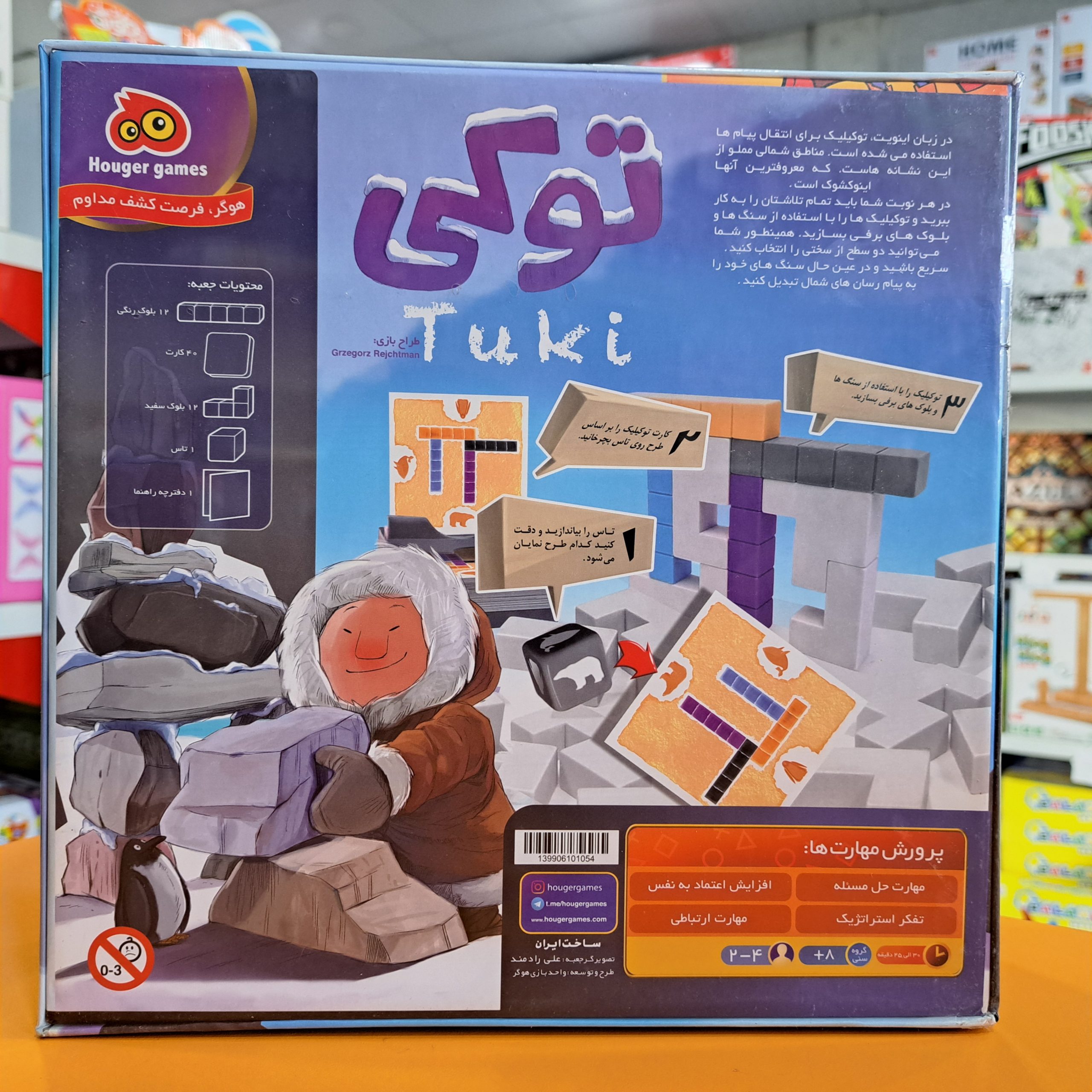 به دنیای توکی خوش آمدید! یک بازی فکری و رومیزی جذاب ایرانی که شما را به سرزمین سرد و یخی اسکیموها میبرد. در این بازی، شما باید با استفاده از قطعات چوبی و تاسها، سازههای سنگی باستانی به نام “اینوکشوک” بسازید.