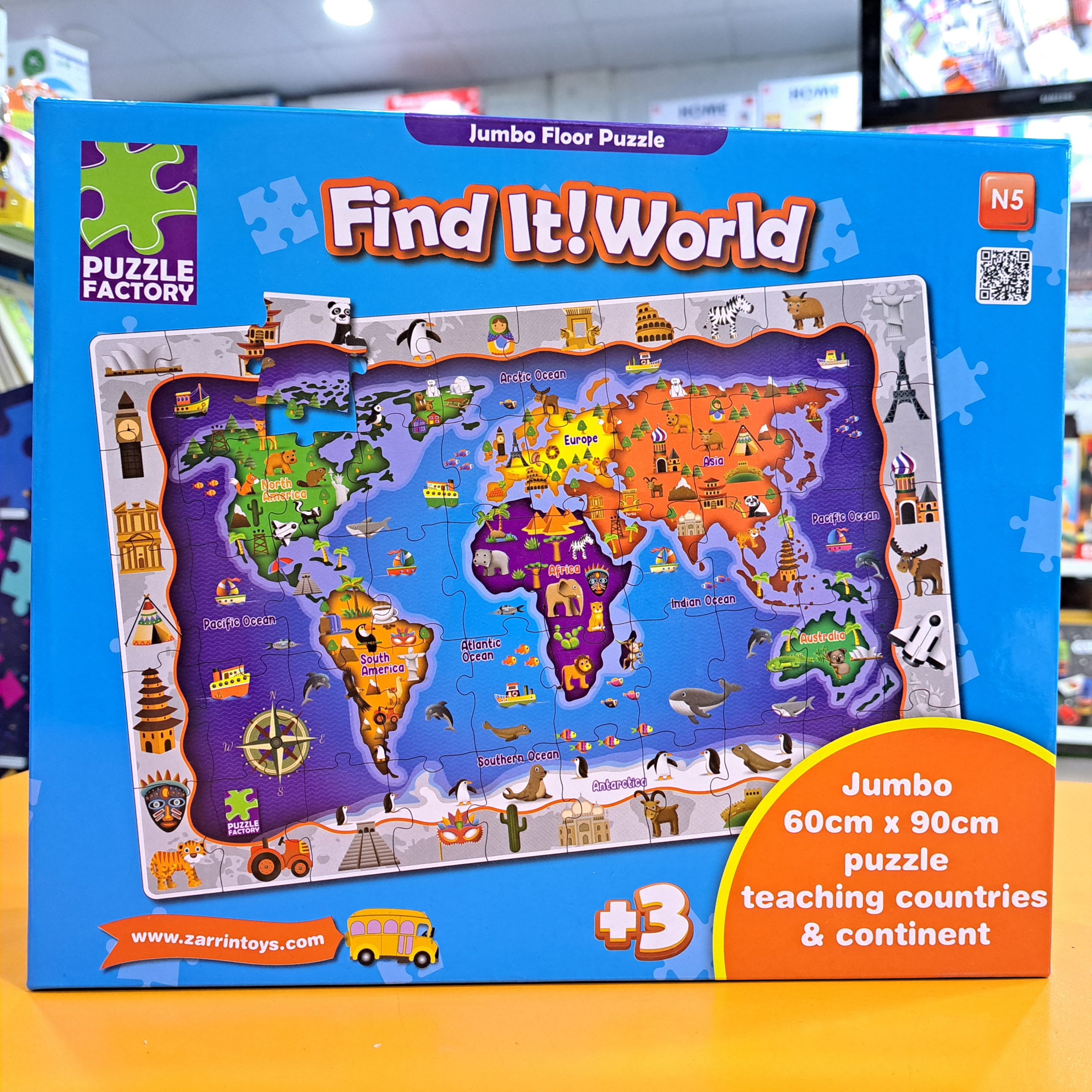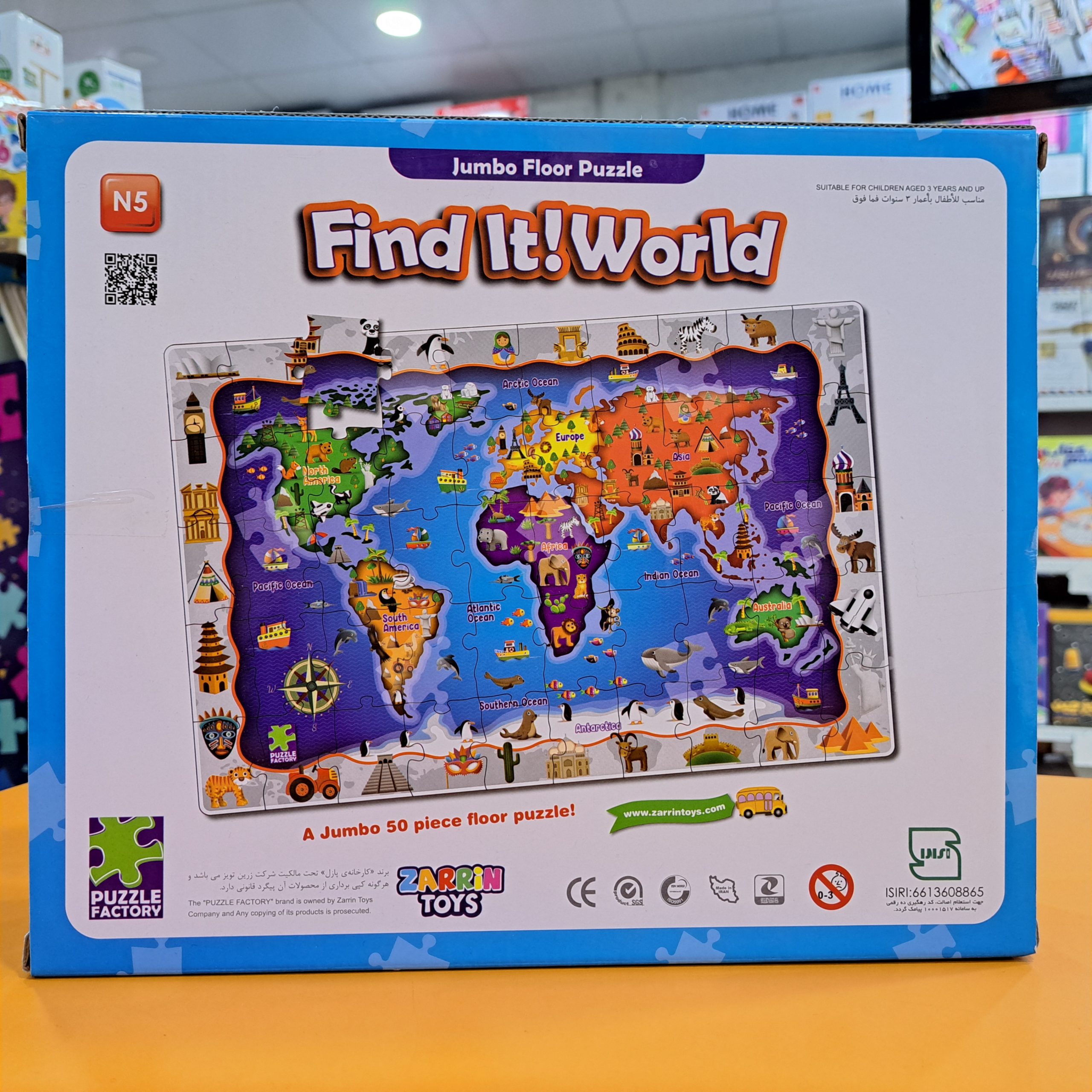 - نقشه جهان واضح و جذاب: پازل تصویری واضح و جذاب از نقشه جهان را ارائه میدهد که به کودکان در شناخت قارهها و کشورها کمک میکند.